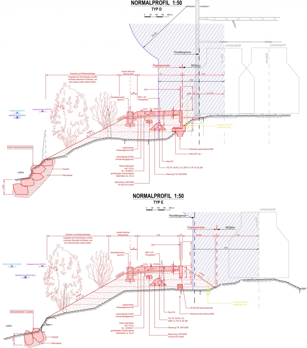 Neben den klassischen geo- und dammbautechnischen Massnahmen zum Schutz vor Hochwasser, werden auch renaturierende Aspekte wie Initialgerinne mit eigendynamischem Entwicklungspotenzial, Herstellen der ökologischen Durchgängigkeit, aber auch Naherholungsaspekte für die Bevölkerung berücksichtigt.